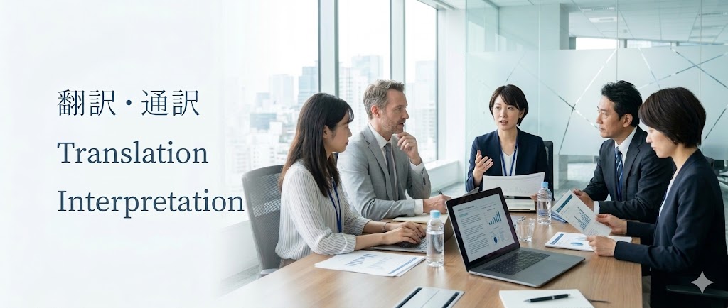 海外とのビジネスや交流の場で、正確で円滑なコミュニケーションをサポートします。会議・商談・視察・イベントなどの通訳から、各種文書の翻訳まで幅広く対応しています。専門分野や用途に応じて、経験豊富な通訳者・翻訳者が対応いたします。